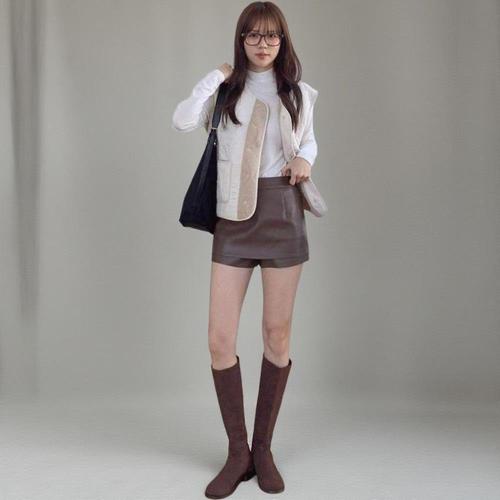 [미라클세븐]여성 독특한 A라인 가죽 미니스커트 속바지