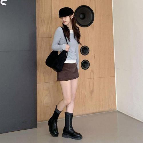 [신상오픈런]여성 A라인 미니 스커트 골지 벨트와 속바지 세트