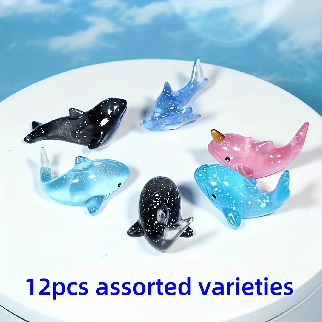 TEMU 12개의 아름다운 해양 동물 레진 장식 보석 패키지, 파란색 고래 사자 상어, 파티 선물, 자동차 장식, 휴일 선물, 정원 장식, 보석 종류