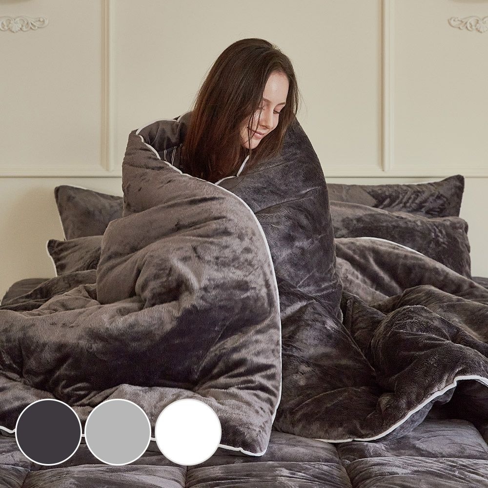[에이트룸] 블랑쉬 솔리드 보아밍크 겨울 극세사 차렵이불 풀세트