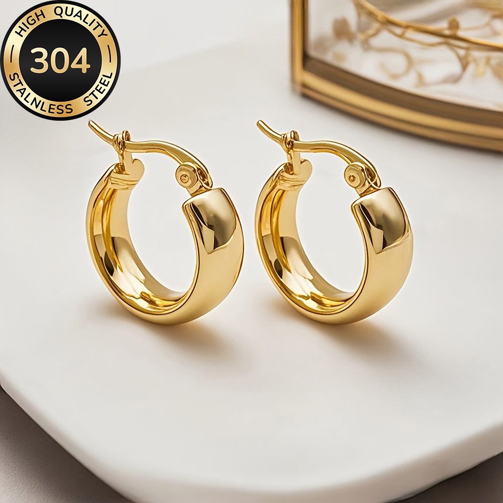 TEMU 여성용 저자극성 스테인리스 스틸 골드 후프 귀걸이 - 퇴색 방지 & 편안함, , 파티, 세련된 스타일, 패션 애호가를 위한 우아한 디자인