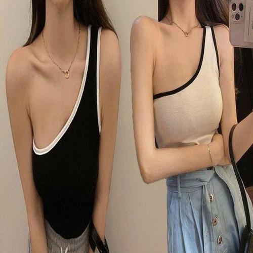 [셀러허브_여성트랜드패션]페스티벌 민소매 원숄더 패션 이너 배색 언발 나시티