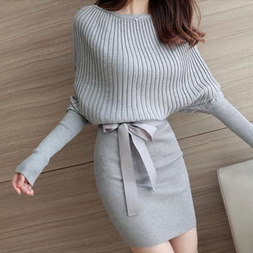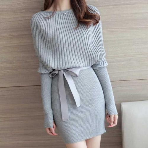 [오너클랜]인기상품 여자 체형커버 니트 숄더 슬림핏 고급 리본 원피스 [WFFLNBT_250918]