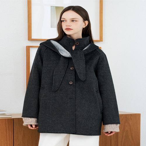 [비엔엑스]후드 숄 세트 울 블렌드 하프 코트 (BX4CT007L0)
