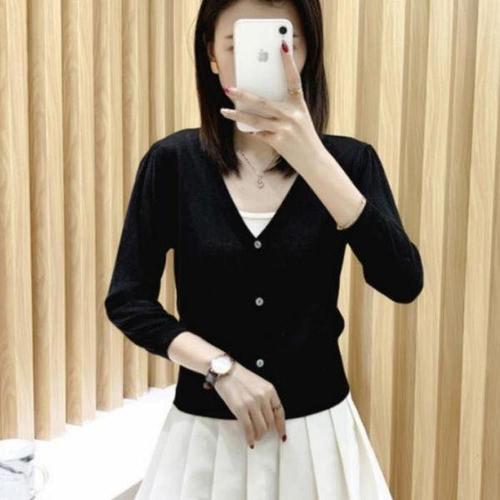 [셀러허브_여성트랜드패션]ONM 브이넥 무지 숏가디건 얇은 긴팔가디건 여성