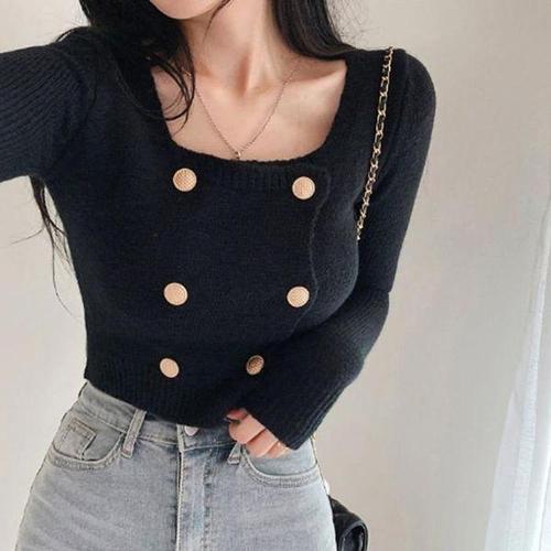 [셀러허브_여성트랜드패션]ONM 더블버튼 크롭 가디건 간절기 긴팔가디건 여성 숏