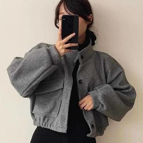 여성용 숏 노카라 모직 자켓 오피스 슬림 하프 코트 봄가을 라운드넥 버튼 캐주얼 베이직 숏 아우터
