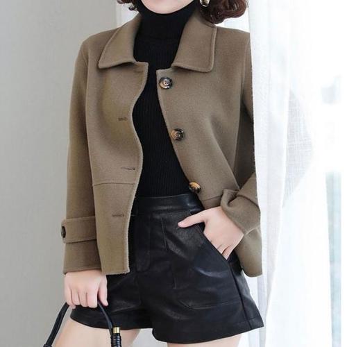 체인지쉬(change she) 여성 클래식 더블 단추 심플 모직 숏 코트