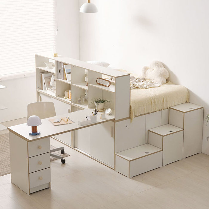 [오피스 체어 씨엘로 B 선물] 파로마 큐브 B 책장형 수납침대 ( 매트리스, 책상, 화장대 추가가능) 슈퍼싱글프레임 원룸