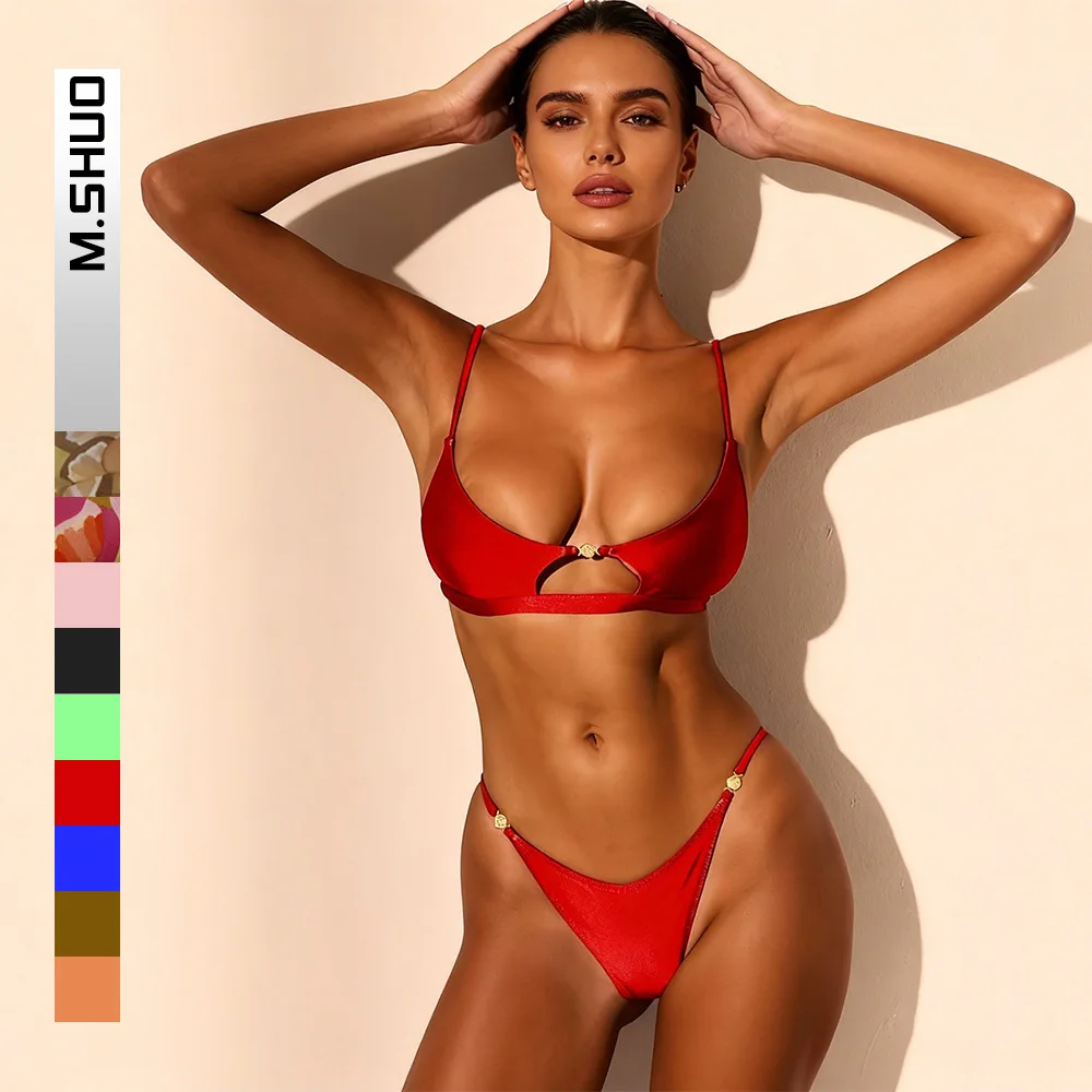 푸쉬업 수영복 여성 수영복 2025 섹시 브라질리언 비키니 세트 끈 비키니 여성 수영복 솔리드 비치웨어