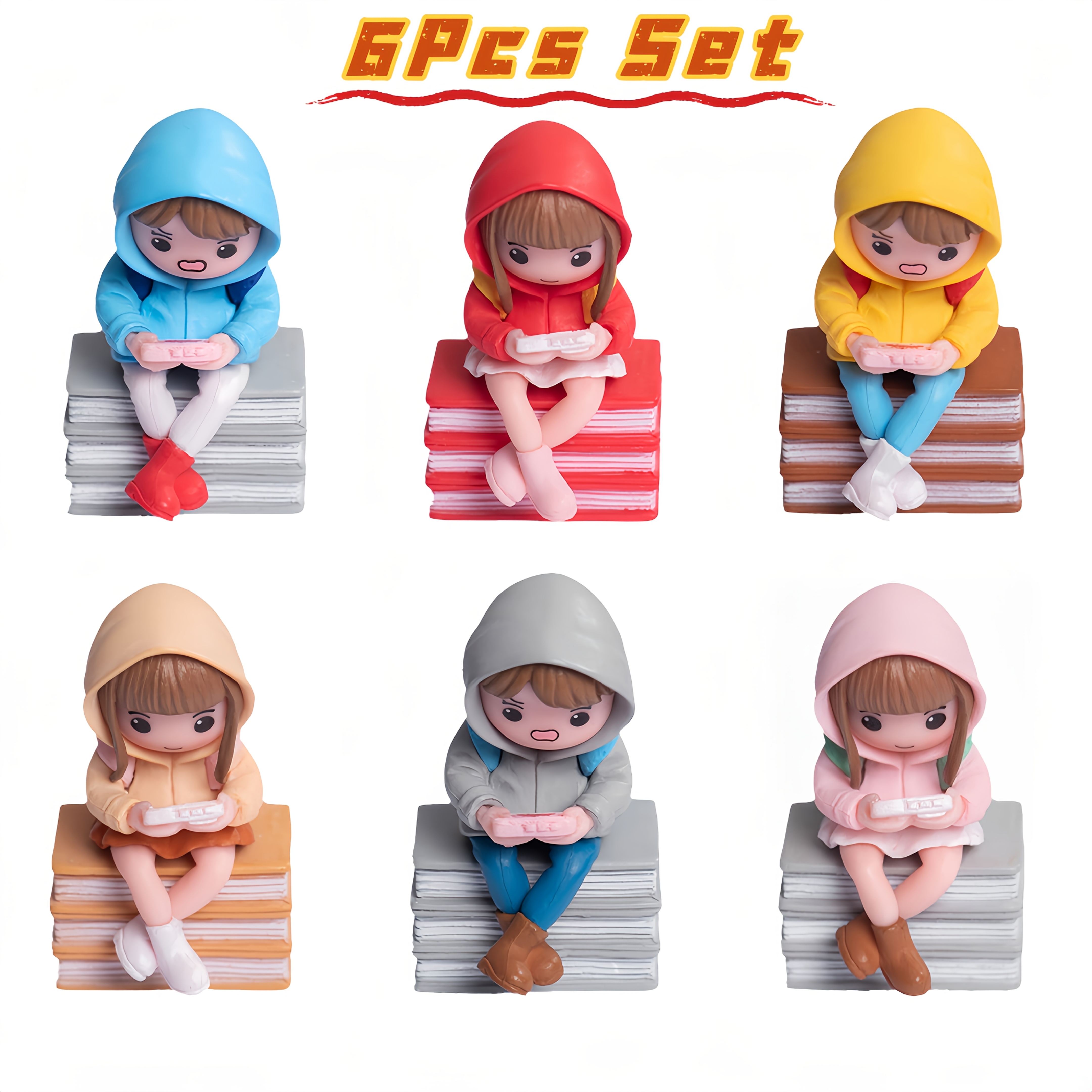 TEMU 6피스 게이밍 커플 피규어, 귀여운 PVC 피규어 백팩 포함, 테라리움, 데스크탑 및 차량 대시보드용 미니어처 장식