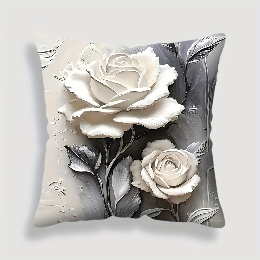 TEMU 2D 평면, 우아한 화이트 로즈 토우 패일로 커버 - 그레이 & 화이트 추상 꽃 디자인, 지퍼, 기계 세척 가능 폴리에스테르, 17.7x17.7인치 - 거실, 침실, 자동차 시트 장식에 이상적 (삽입 없음), 장식용 패일로