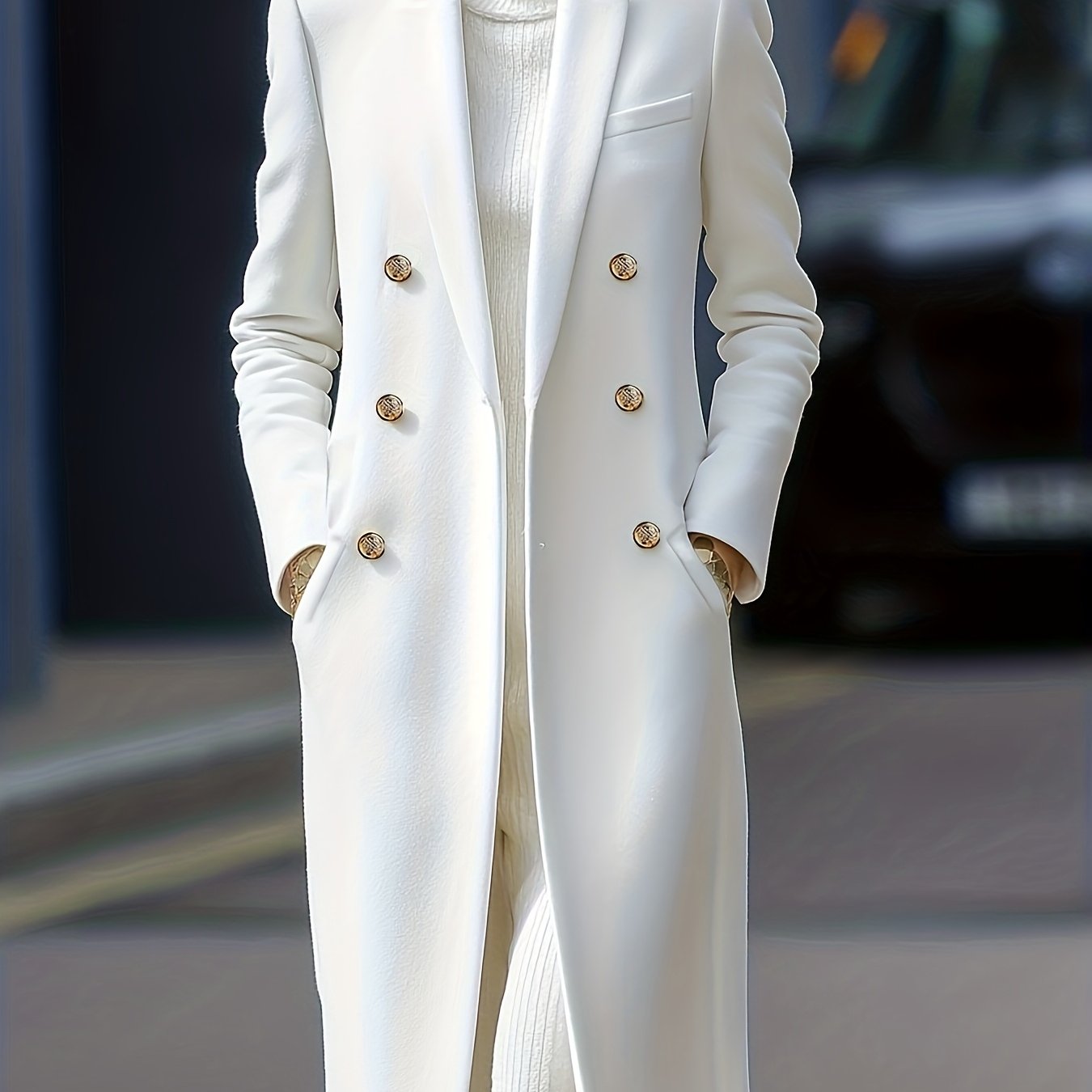 TEMU 여성용 우아한 롱 코트 - 포멀 & 데일리 시크 아우터, 구조화된 H-실루엣 겨울 트렌치 코트, 버튼 앞면 클로저, 올 시즌 우아한 재킷 (오피스, 파티, 캐주얼 의상) - 세련된 여성 의류, 파티 복장