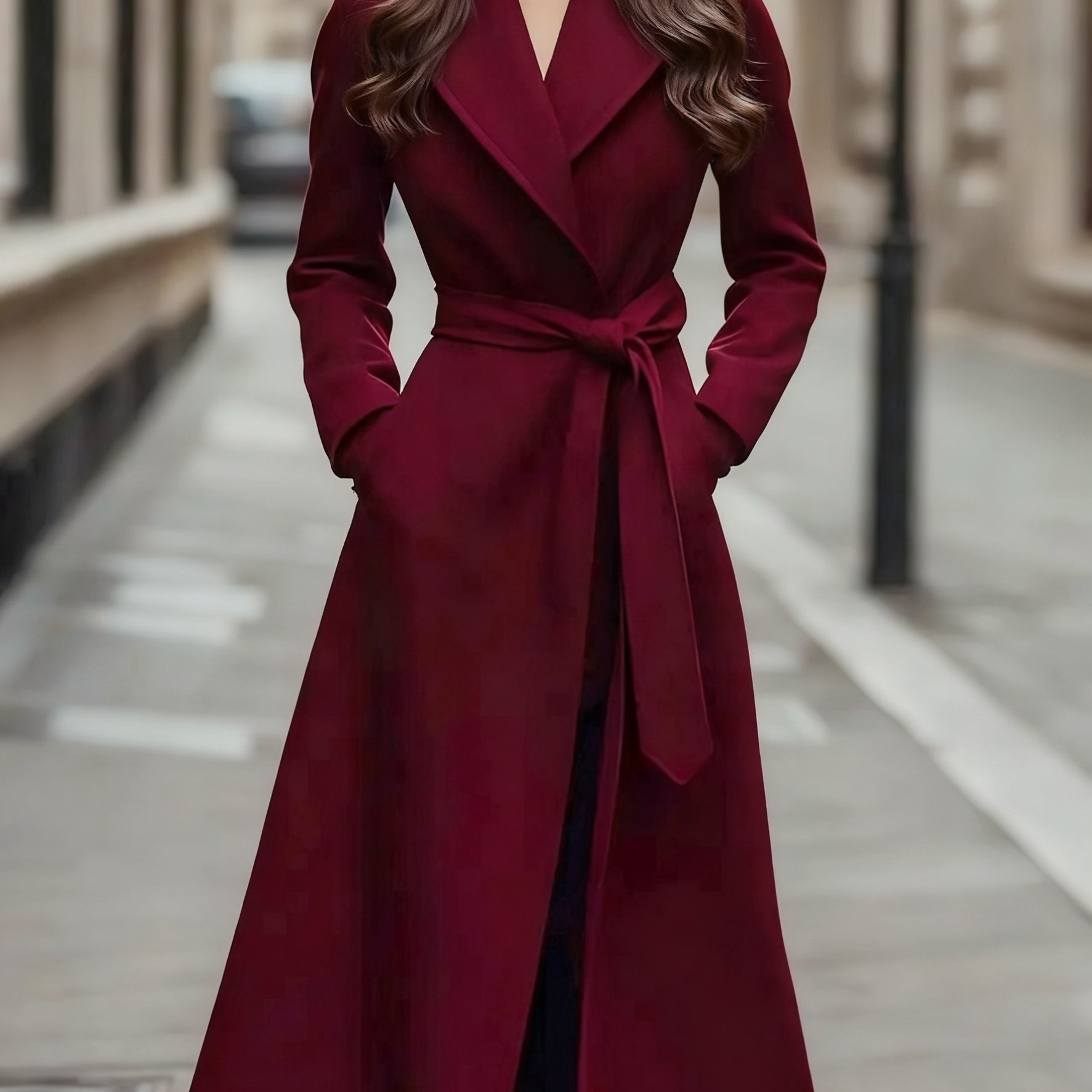 TEMU 여성용 우아한 롱 코트 - 벨트 허리, 시크한 오피스부터 파티까지 겸용, 가을/겨울용 논스트레치 원단, 여성용 우아한 포멀 & 데일리 아우터, 여성 겨울 코트