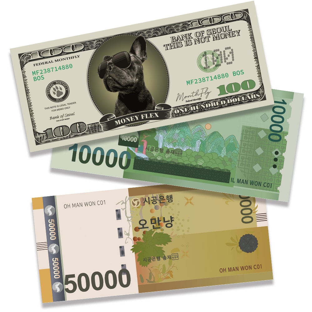 페이크머니 가짜 종이 돈 지폐 장난감 화폐 떡메모지 3종 (80매)