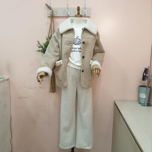 SOUP 세이브존07 카라 배색 무스탕 점퍼 OABMUT1