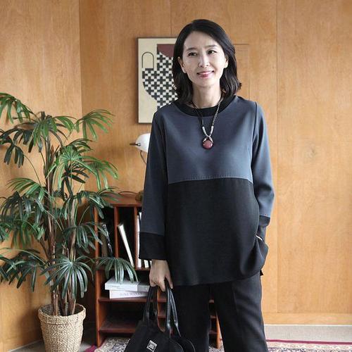 [쉬즈마담]T57421 모던 상하배색 롱블라우스 50대 엄마옷