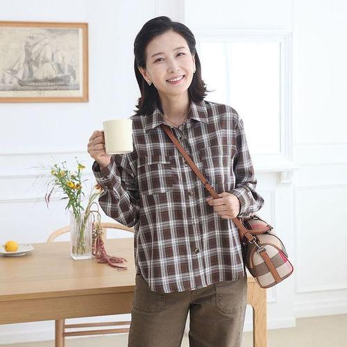 [쉬즈마담]T57400 모던 타탄체크 양포켓 남방 50대엄마옷