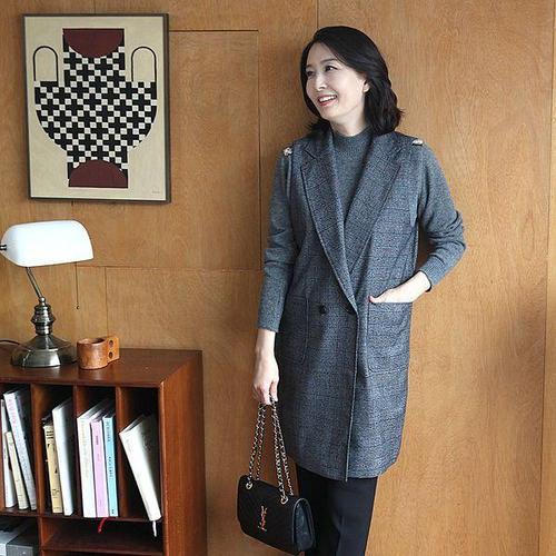 [쉬즈마담]J31742 모코 체크 정장 롱베스트 50대 엄마옷