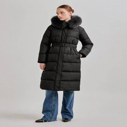 [최초가 499,000원][로안] 폭스 후드 벨티드 롱 다운