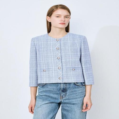 [쉬즈미스]쉬즈미스 린넨 트위드 라운드넥 자켓__S SWWJKO22040