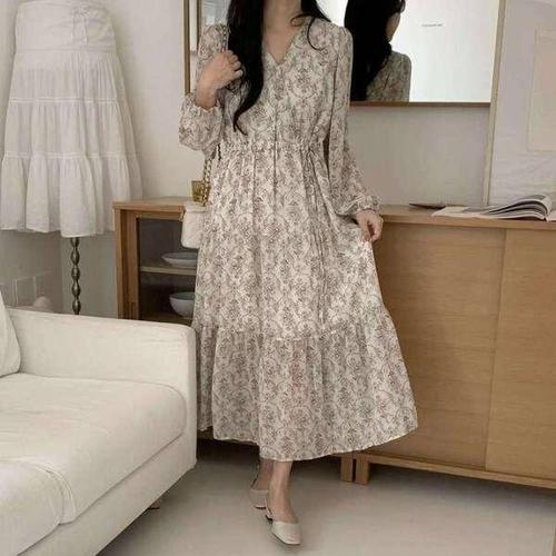 [C&D] 플로랄 톤앤 브이넥 쉬폰 꽃무늬 데이트룩 원피스