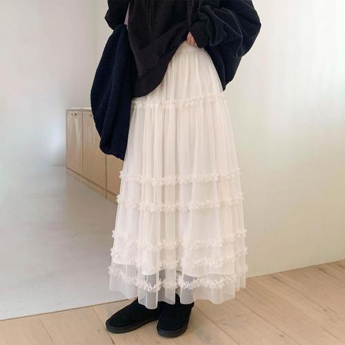 여성용 큰 밑단 쉬폰 롱 스커트, 한국 캐주얼 심플 단색, 3 레이어 A 라인 하이웨이스트 롱 스커트, 신상