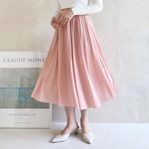 [엄지척]러블리 쉬폰 주름 밴딩 여자 미디 스커트 치마 하의_19957631_667501
