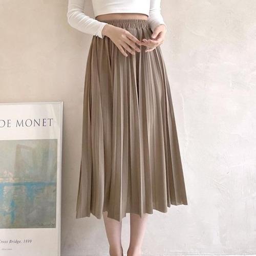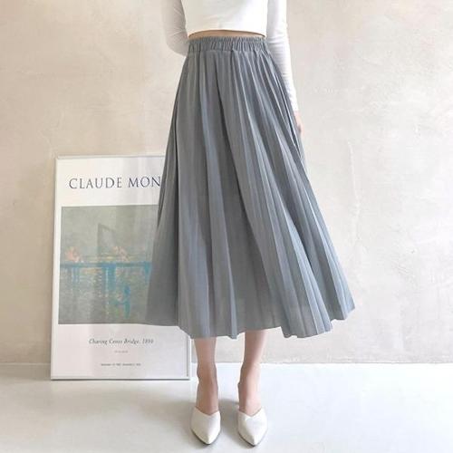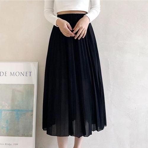 [엄지척]여성 3컬러 우아한 데일리 쉬폰 주름 밴딩 미디스커트_19948663_667501