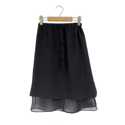 [샵앤]국산 여성 밴딩 쉬폰 레이어드 미디 스커트 STJ-WSK-4870-블랙