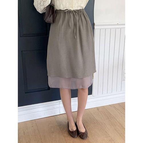 샵앤) 국산 여성 리본밴딩 쉬폰 레이어드 미디 스커트 STJ-WSK-4870-베이지