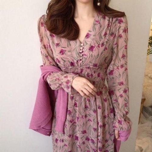 긴팔 쉬폰 원피스 롱 플라워믹스 로미홀리 WFLMV3X