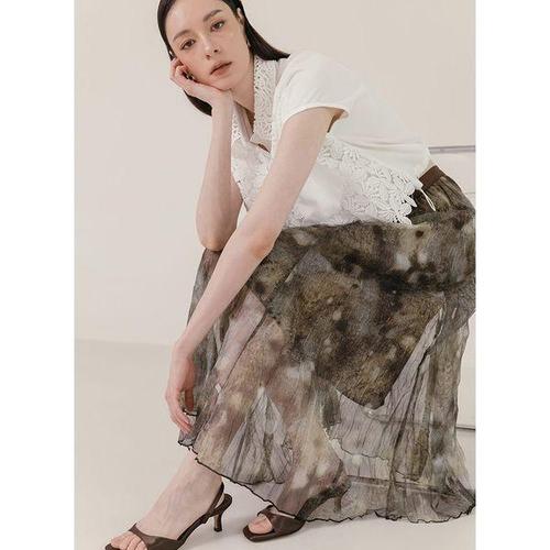 EAMT 여친 스커트 롱 봄 여름 레이스 프린트 슬림핏 퍼프 프렌치 쉬폰 EUNG2