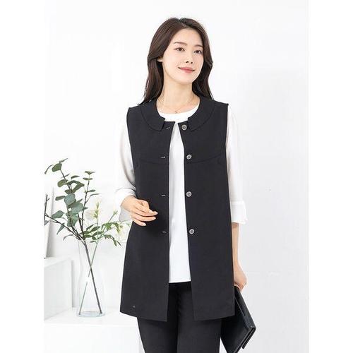 애비뉴투지 엄마옷 쉬폰 플리츠 원버튼 라운드 봄 가을 정장 롱 조끼 V04514