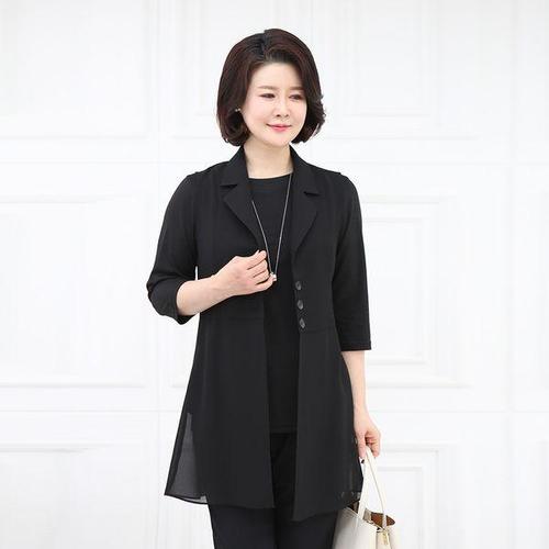 엄마옷 드리다 여성 여름 노카라 쉬폰 롱 조끼 베스트 40-50대 미시 중년여성 엄마옷 하객 모임 출근 마담
