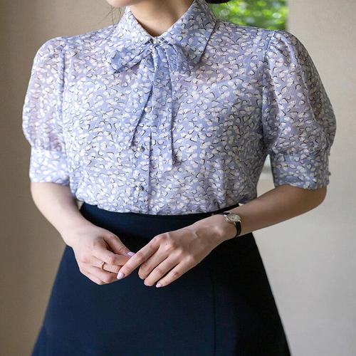 [스타일온미][루이스엔젤] 꽃잎 패턴 타이SET 요루 쉬폰 퍼프 블라우스