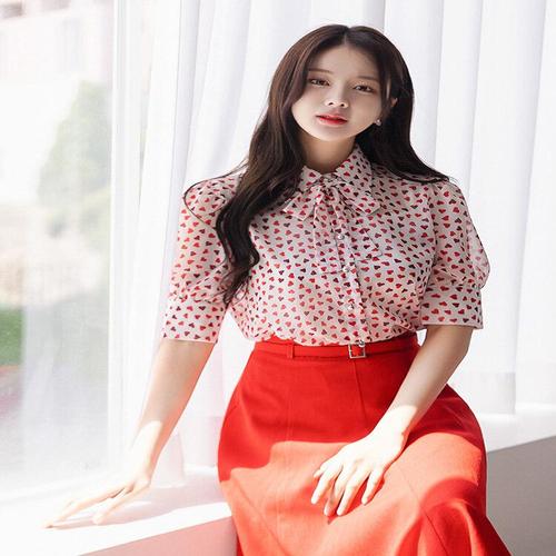 [스타일온미][루이스엔젤] 하트 체리시 리본타이SET 여리여리 쉬폰 블라우스