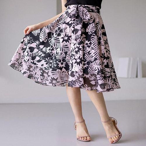 [스타일온미][루이스엔젤] 레아라 허리 리본 벨트SET 밑단 쉬폰 A라인 풀 플레어 스커트