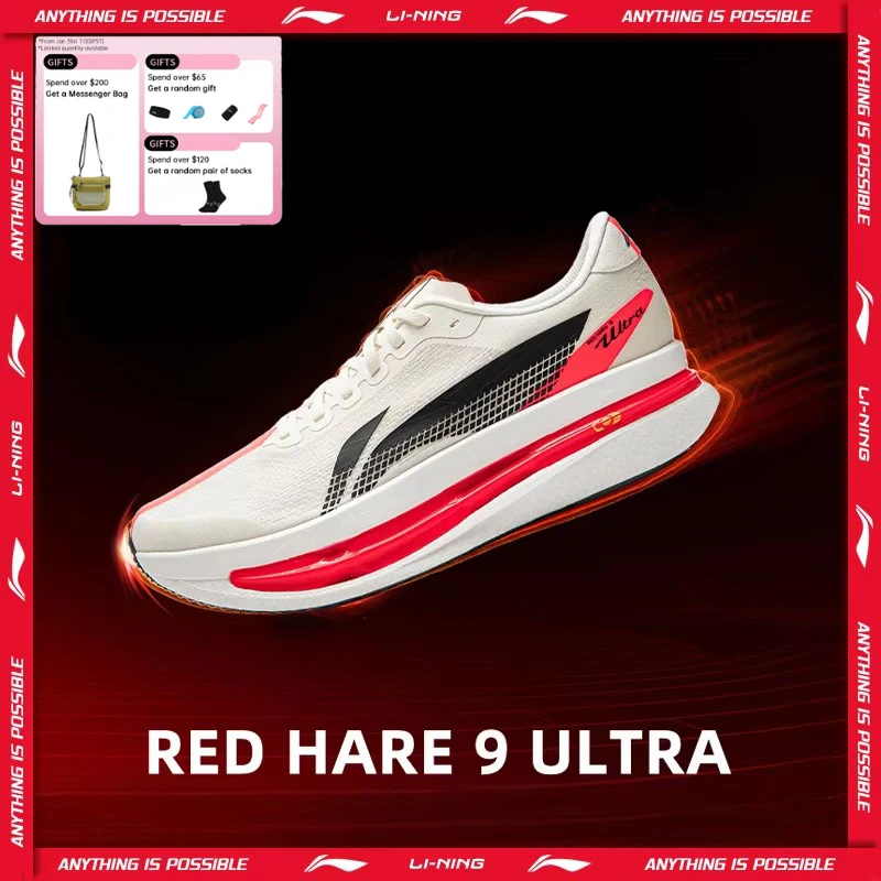 Li-Ning 남성용 RED HARE 9 ULTRA 레이싱 러닝화 슈퍼 붐 쿠션 붐 파이버 통기성 LiNing 트레이닝 스니커즈 ARPW007