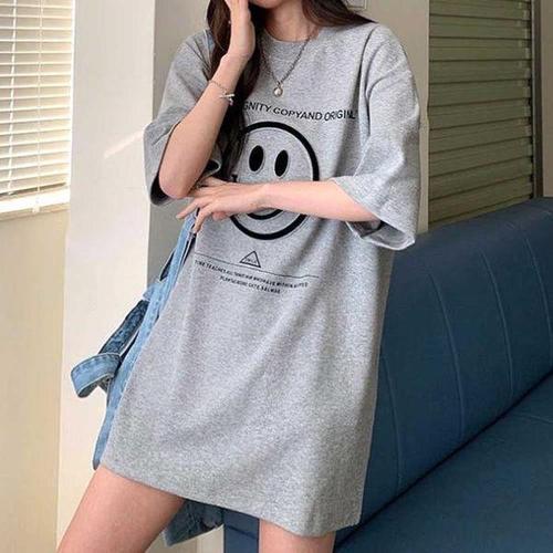 [엄지척]여성 스마일 오버핏 여름 캐주얼 반팔 티셔츠 박스티_19557172_667501