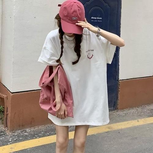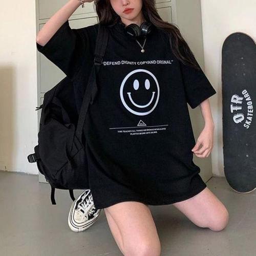 [셀러허브_여성트랜드패션]ONM 오버핏 스마일 프린팅 반팔 티셔츠 힙한 감성 박스핏