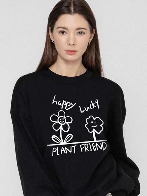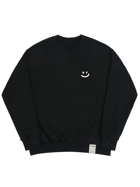 [그레이버] [UNISEX]드로잉 해피 럭키 스마일 맨투맨_블랙
