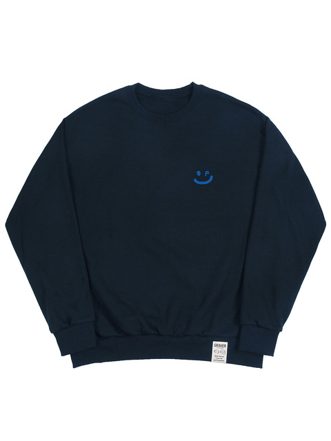 [그레이버] 스몰 드로잉스마일 맨투맨_네이비/블루 로고