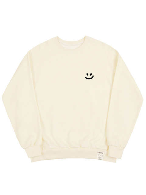 [그레이버] 스몰 드로잉스마일 맨투맨_크림/블랙 로고