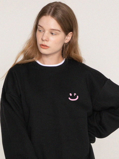 [그레이버] 스몰 드로잉스마일 맨투맨_블랙/핑크 로고