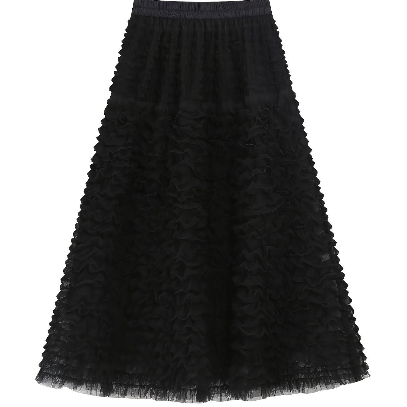 TEMU 우아한 빈티지 메쉬 롱 스커트 | 여성용 스트레치 허리 A라인 스커트, 단색, 봄/가을에 적합