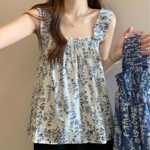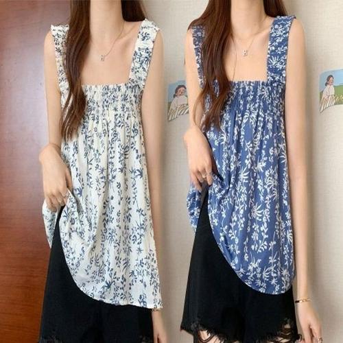 [엄지척]여성용 캐주얼 꽃무늬 포인트 가슴 스모크 밴딩나시티_19610223_667501