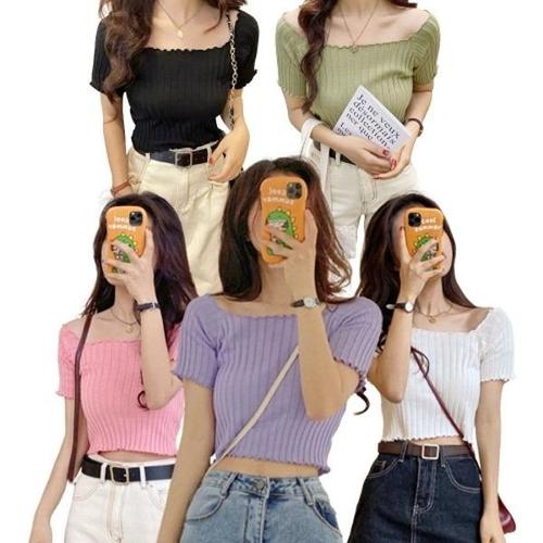 [엄지척]여성 5색 스모크 밴딩 모던 캐쥬얼 크롭탑 반팔 셔츠_19558722_667501