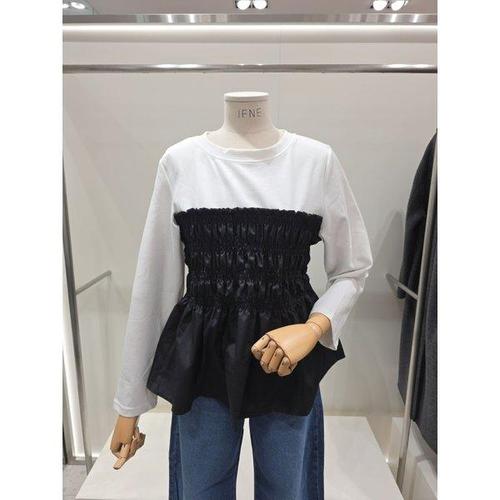 [포커스]FF5H9BL5245_스모크 배색 뷔스티에 블라우스