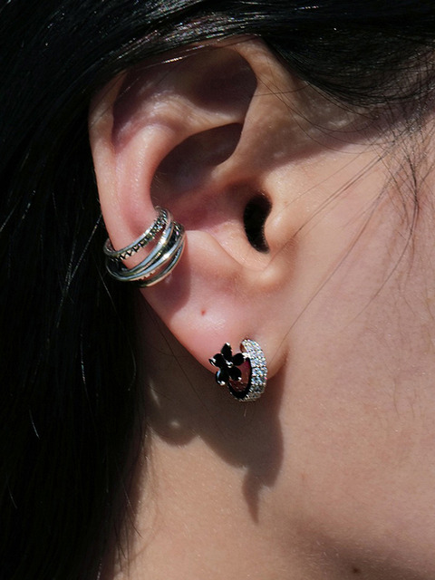 [비스완] 링 블랙 플라워 귀걸이 #7537
